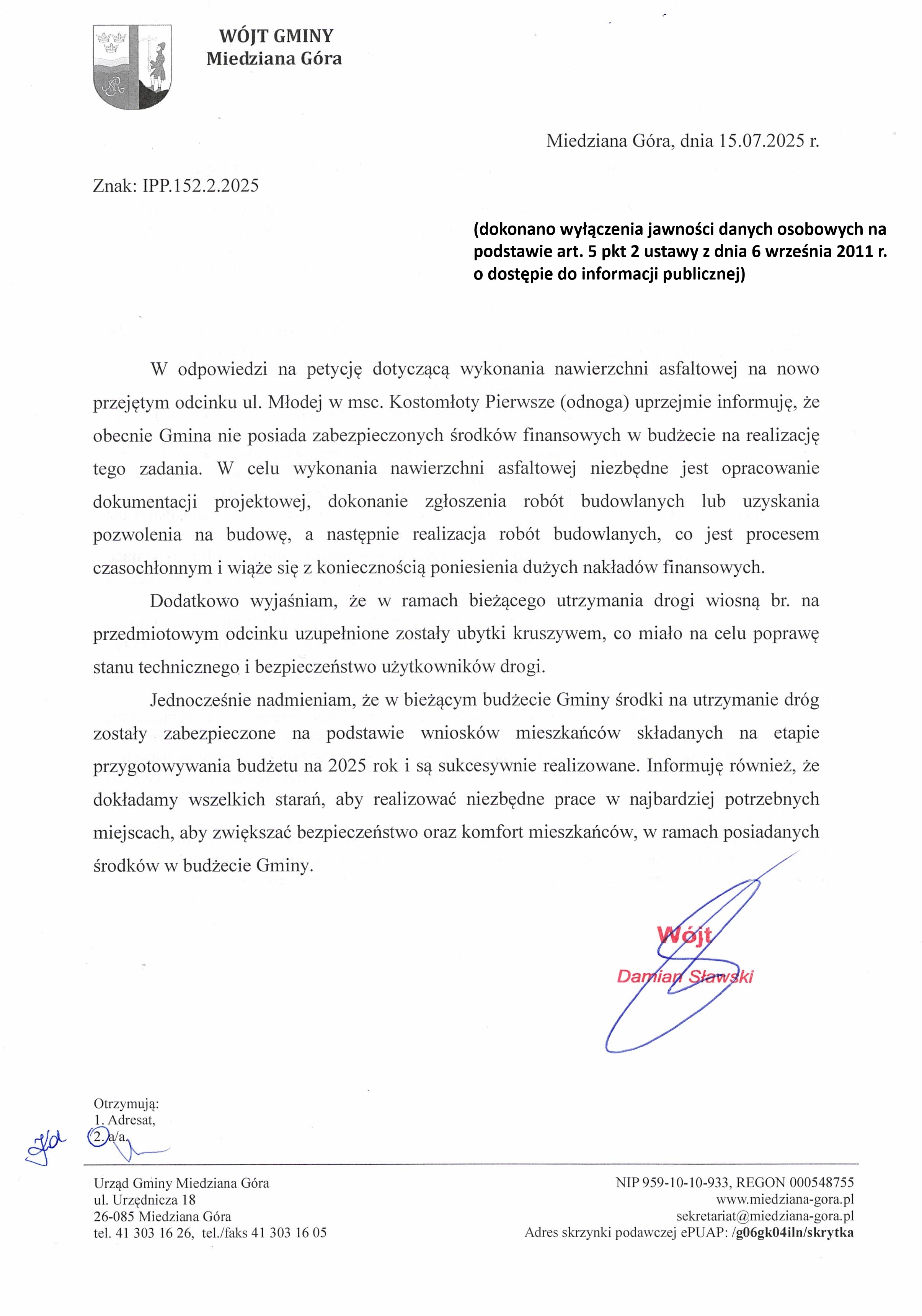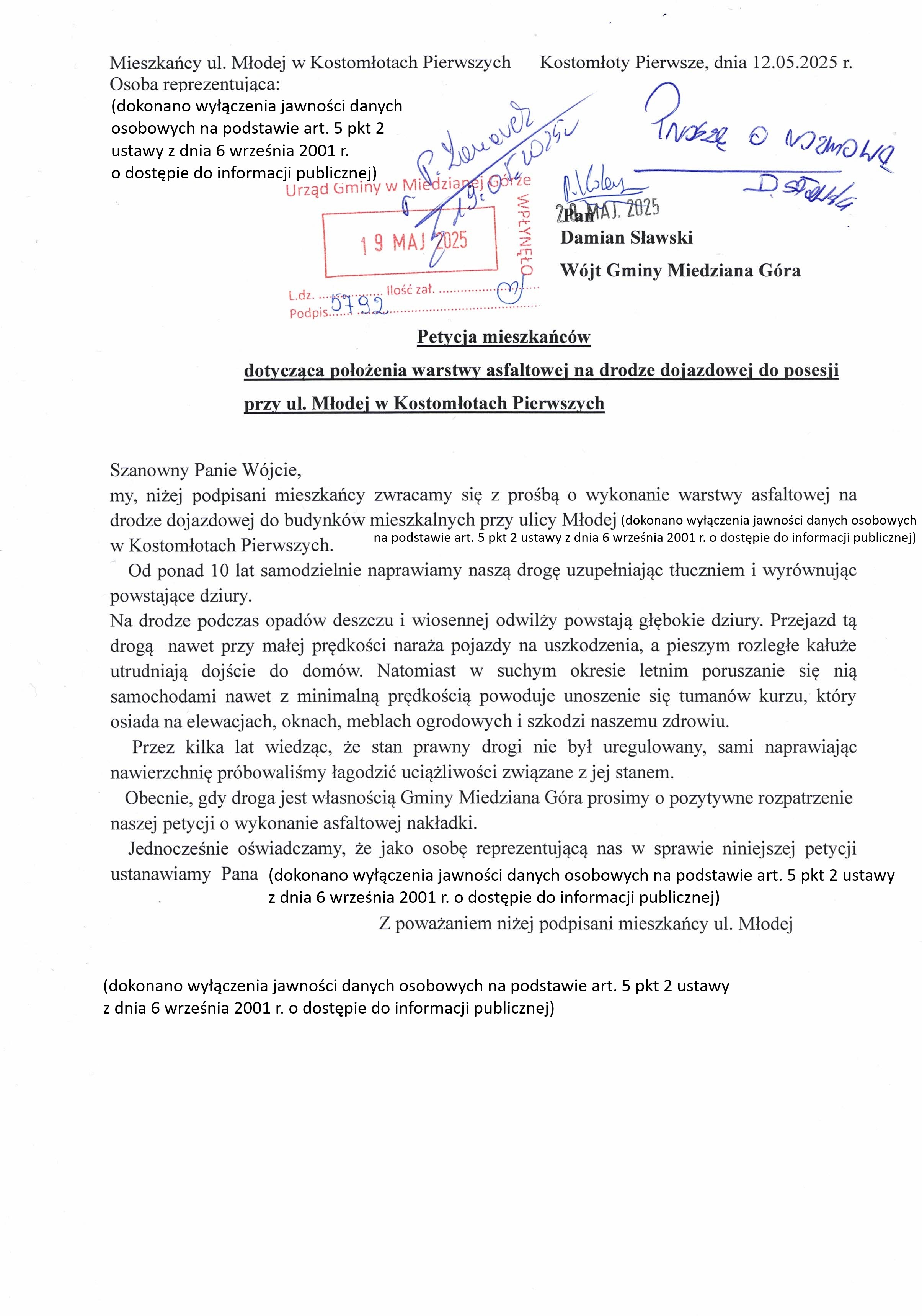 Petycja w sprawie wykonania nawierzchni asfaltowej na ul. Młodej w msc. Kostomłoty Pierwsze